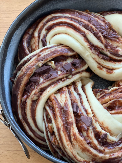 11. Beurrer et fariner un cercle de 20 cm, et déposer en cercle la torsade.