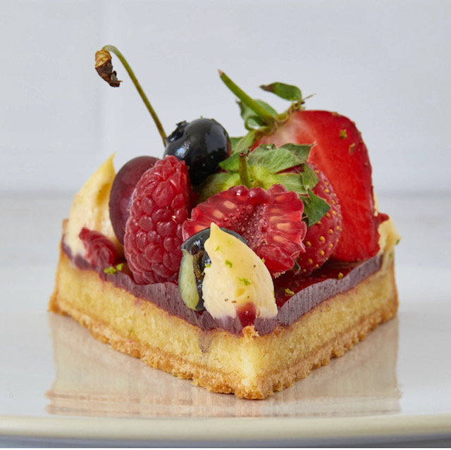 J’adore ce moment de l’année où on peut encore trouver des cerises, mais aussi les premières myrtilles, les premières framboises … J’ai eu envie de mettre tous ces fruits sur une tarte.